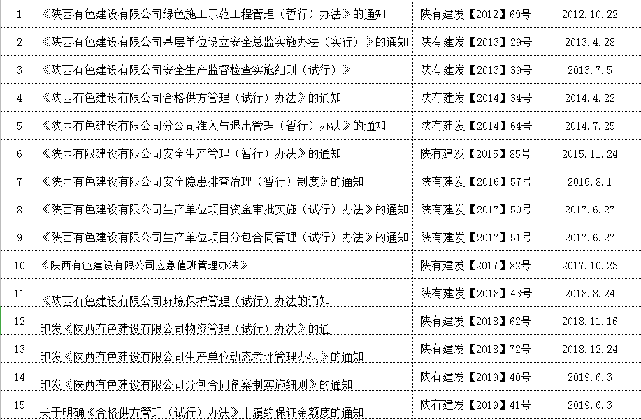 三、公司管理體系制度不斷完善健全。制定了《陜西有色建設(shè)有限公司安全生產(chǎn)管理手冊(cè)》《陜西有色建設(shè)有限公司文明施工、綠色施工管理手冊(cè)》《陜西有色建設(shè)有限公司VIS企業(yè)視覺(jué)識(shí)別系統(tǒng)》。