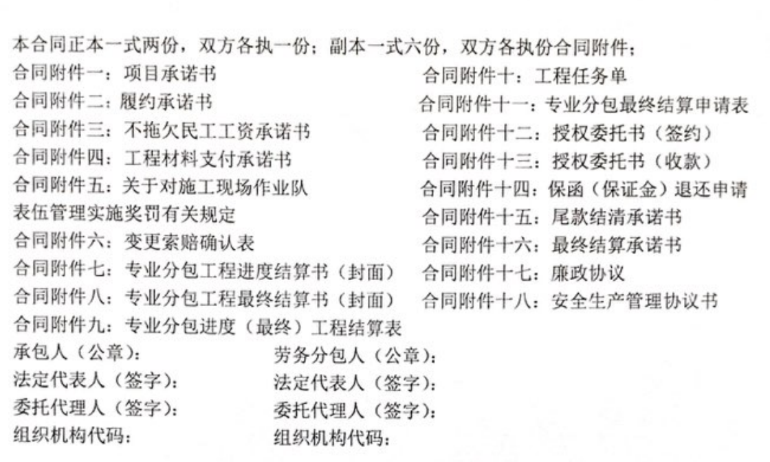 此類合同附件是主合同的重要組成部分,反映的是發(fā)包企業(yè)的內(nèi)部管理控制措施與風(fēng)險(xiǎn)防范機(jī)制形式表現(xiàn)。附件內(nèi)容著眼于管控與市場(chǎng)透明化這一目標(biāo),顯示的是合同的公允性與專業(yè)化規(guī)范管理機(jī)制。一般情況下,此類附件在投標(biāo)過程中已部分提供。履約過程中,項(xiàng)目部管理人員應(yīng)嚴(yán)格按照合同附件所提供的報(bào)量表、結(jié)算表填制完成,避免審核周期過長(zhǎng),影響發(fā)包方支付進(jìn)度款。