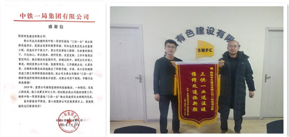 近日,公司收到建設(shè)單位中鐵一局集團(tuán)有限公司發(fā)來(lái)的感謝信,感謝公司在“三供一業(yè)”物業(yè)維修改造項(xiàng)目實(shí)施中,面對(duì)時(shí)間緊、任務(wù)重的情況,項(xiàng)目部人員攻堅(jiān)克難、雷厲風(fēng)行、實(shí)干高效、敢打硬仗,順利完成各小區(qū)的維修改造工程,取得了階段性的勝利,希望公司再接再厲,一如既往堅(jiān)持好的經(jīng)驗(yàn)做法,確保所有工作全部順利完成。