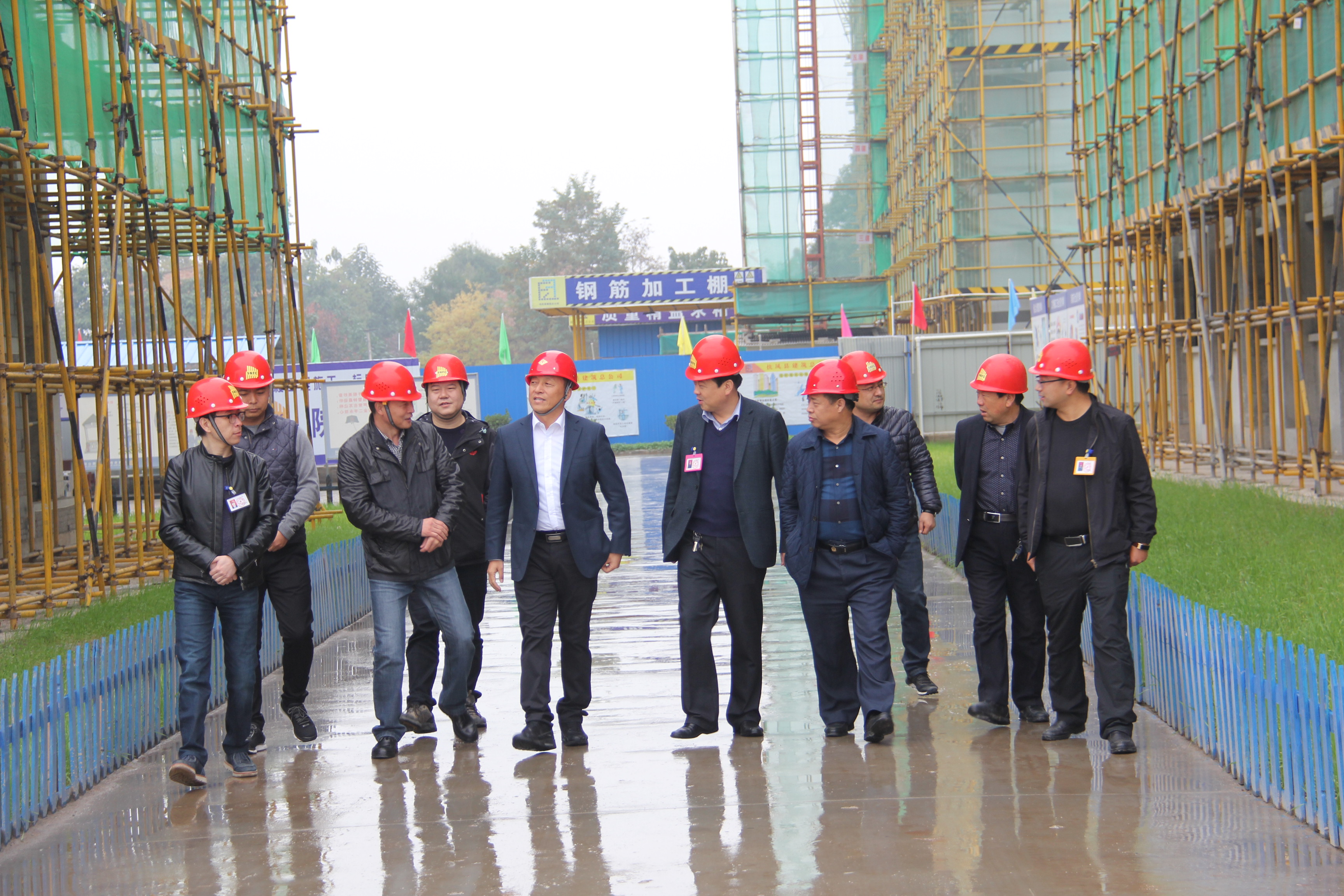 楊總一行先后前往了第二工程公司扶風社會福利中心項目及扶風高中綜合教學樓項目、第十七工程公司扶風縣法門鎮(zhèn)移民搬遷工程項目、第五分公司扶風體育運動中心項目。在調研過程中,各生產單位負責人首先就項目建設方面情況向楊總作了匯報,并陪同調研組成員對施工現場的工程質量和安全進行了深入檢查。楊總每到一處,都認真對現場各環(huán)節(jié)進行檢查詢問,發(fā)現有問題的地方,立即要求組織整改,并安排后續(xù)復查工作。他表示,施工質量代表著企業(yè)實力,施工安全關乎每一位員工、每一個家庭的幸福。希望大家要從思想上、行動上提高安全防范意識,加快建設進度,確保按期完成目標任務。