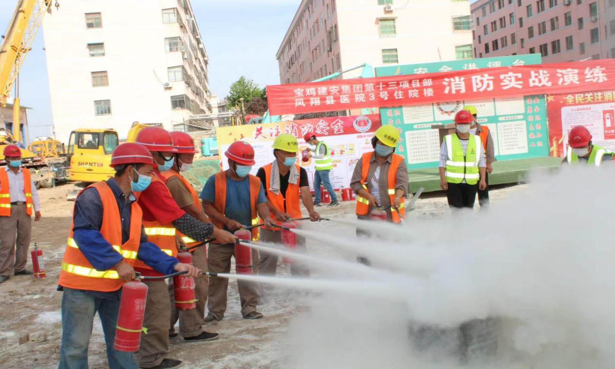 2020年6月是全國第19個“安全生產(chǎn)月”,為進(jìn)一步加強(qiáng)項(xiàng)目安全管理工作,強(qiáng)化消防安全意識,認(rèn)真貫徹”安全第一、預(yù)防為主、綜合治理”的方針,全面落實(shí)安全生產(chǎn)主體責(zé)任,牢固樹立保安全就是保穩(wěn)定、保安全就是促發(fā)展的重要思想,有色陜建第二工程公司在鳳翔縣醫(yī)院項(xiàng)目部組織開展模擬消防安全演練活動。本次演練以模擬火災(zāi)發(fā)生后的組織滅火救援為主要內(nèi)容,鳳翔縣消防支隊(duì)、鳳翔縣縣公安局、縣醫(yī)院醫(yī)護(hù)人員、公司項(xiàng)目全體參建人員,項(xiàng)目其他建設(shè)單位300多人參加了此次演練活動。